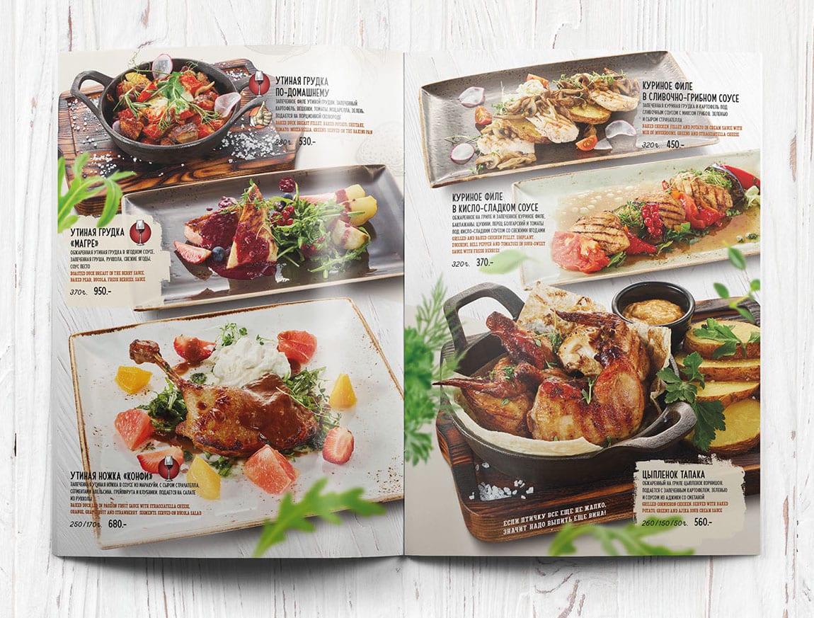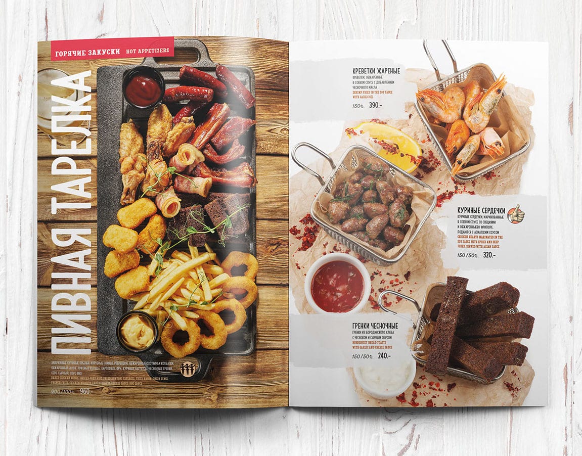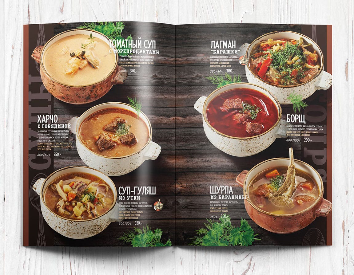 Photoproduction and menu design for «Barashki» restaurant in Naberezhnye Chelny